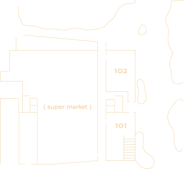 「2wa」を象徴する「庭」とつながる地上階です。庭園に迷い込むように足を踏み入れると、飲食店や物販店舗が現れ、施設の内部と外部が視覚的につながることで、四季の移ろいや風情を感じられる空間と時間を提供します。また、地域の皆さまに喜ばれるスーパーマーケットもあり、住む人にも訪れる人にも、新しい生活を提案するフロアとなっています。