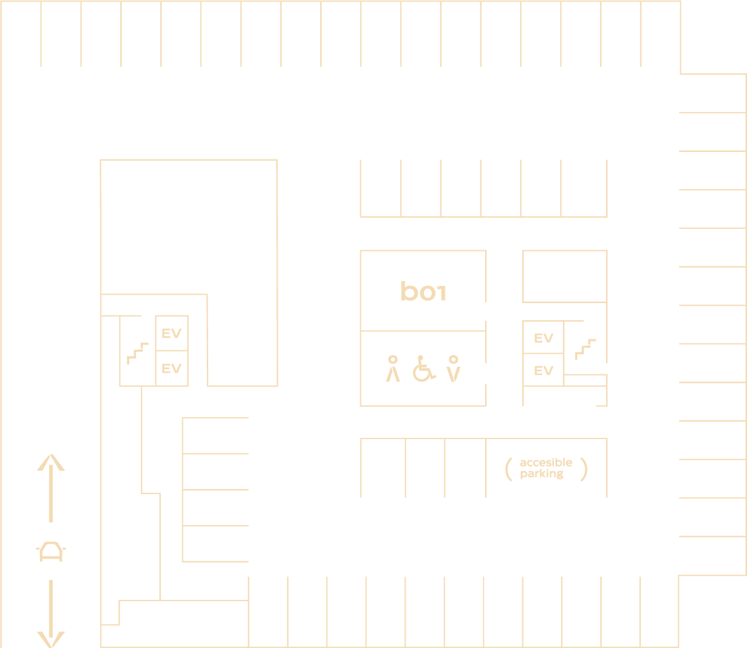施設利用者と入居者のために、全54台の駐車場を完備。仕事や食事、買い物など、岡崎エリアの拠点としてご利用いただけます。さらに、中央には近隣にお住まいの方に便利なサービステナントも設けています。